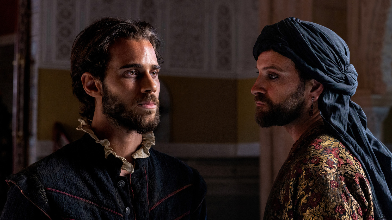 The chemistry between the two lead actors is undeniable, as the film gracefully captures Julio Peña’s youthful and carefree portrayal of Cervantes, full of charm and curiosity, alongside Alessandro Borghi’s seasoned performance as Hasán Bajá, an enigmatic and quietly ruthless governor.
